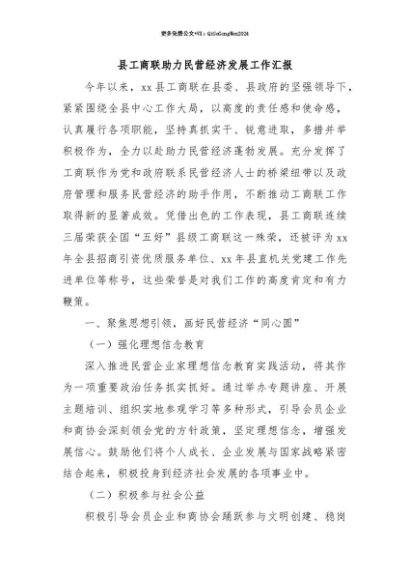 【七哥公文】2025年:【七哥公文】县工商联助力民营经济发展工作汇报+更多免费公文+VX:QiGeGongWen2024+更多免费公文+VX:QiGeGongWen2024