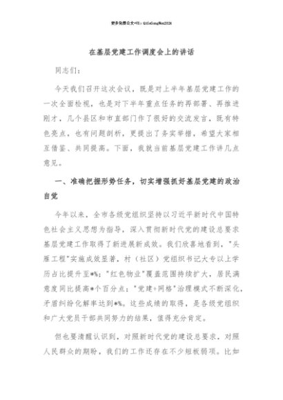 【七哥公文】2025年:【七哥公文】在基层党建工作调度会上的讲话+更多免费公文+VX:QiGeGongWen2024+更多免费公文+VX:QiGeGongWen2024