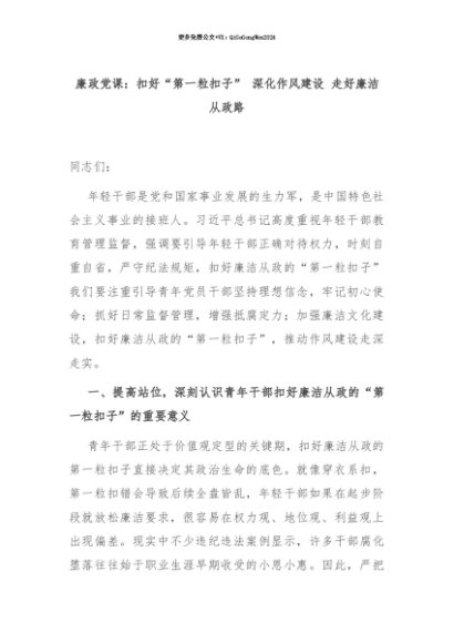 【七哥公文】2025年:【七哥公文】廉政党课:扣好“第一粒扣子” 深化作风建设 走好廉洁从政路+更多免费公文+VX:QiGeGongWen2024+更多免费公文+VX:QiGeGongWen2024