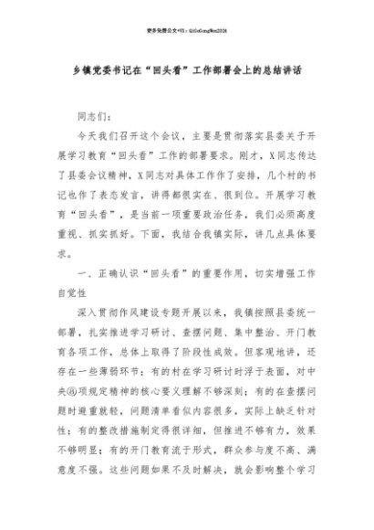 【七哥公文】2025年:【七哥公文】乡镇党委书记在“回头看”工作部署会上的总结讲话+更多免费公文+VX:QiGeGongWen2024+更多免费公文+VX:QiGeGongWen2024