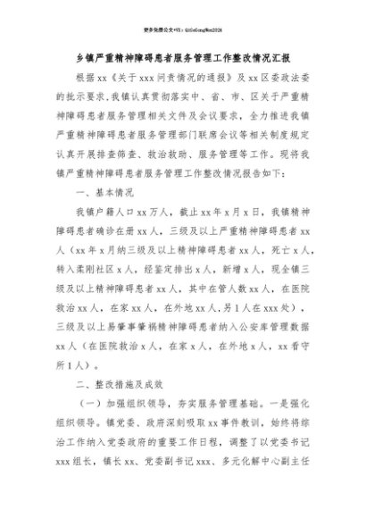 【七哥公文】2025年:【七哥公文】乡镇严重精神障碍患者服务管理工作整改情况汇报+更多免费公文+VX:QiGeGongWen2024+更多免费公文+VX:QiGeGongWen2024