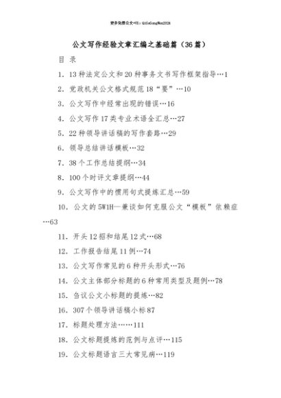 【七哥公文】2025年:【七哥公文】(36篇)公文写作经验文章汇编之基础篇+更多免费公文+VX:QiGeGongWen2024+更多免费公文+VX:QiGeGongWen2024