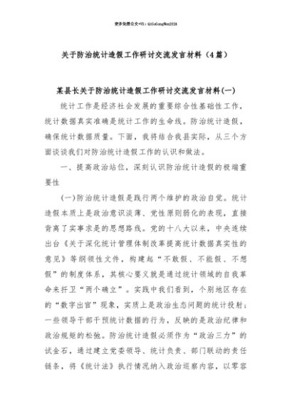 【七哥公文】2025年:【七哥公文】(4篇)关于防治统计造假工作研讨交流发言材料+更多免费公文+VX:QiGeGongWen2024+更多免费公文+VX:QiGeGongWen2024