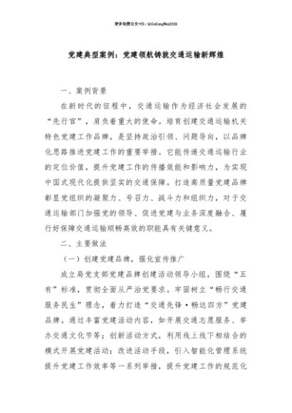 【七哥公文】2025年:【七哥公文】党建典型案例:党建领航铸就交通运输新辉煌+更多免费公文+VX:QiGeGongWen2024+更多免费公文+VX:QiGeGongWen2024