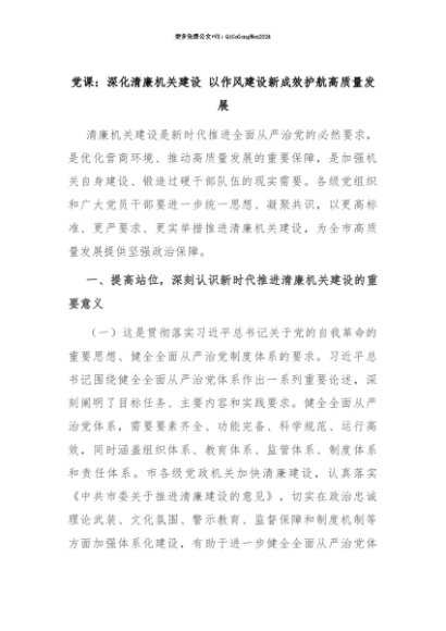 【七哥公文】2025年:【七哥公文】党课:深化清廉机关建设 以作风建设新成效护航高质量发展+更多免费公文+VX:QiGeGongWen2024+更多免费公文+VX:QiGeGongWen2024