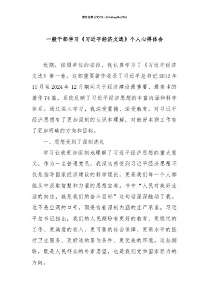 【七哥公文】2025年:【七哥公文】一般干部学习《习近平经济文选》个人心得体会+更多免费公文+VX:QiGeGongWen2024+更多免费公文+VX:QiGeGongWen2024