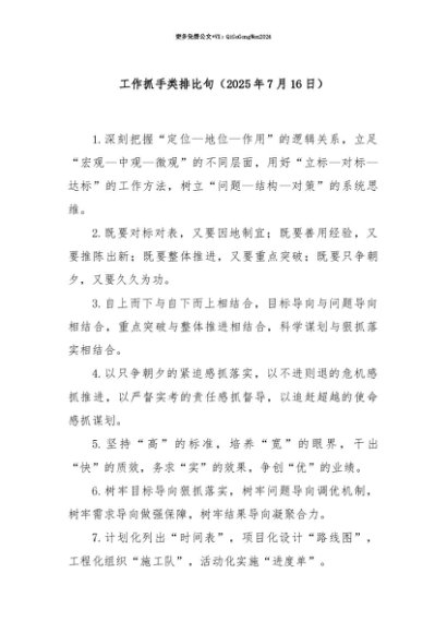 【七哥公文】2025年:【七哥公文】工作抓手类排比句(2025年7月16日)+更多免费公文+VX:QiGeGongWen2024+更多免费公文+VX:QiGeGongWen2024