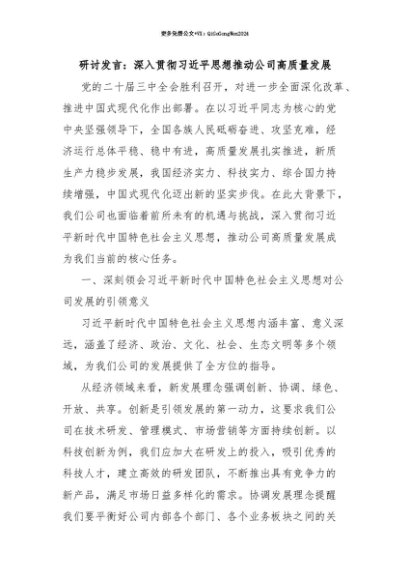 【七哥公文】2025年:【七哥公文】研讨发言:深入贯彻习近平思想推动公司高质量发展+更多免费公文+VX:QiGeGongWen2024+更多免费公文+VX:QiGeGongWen2024