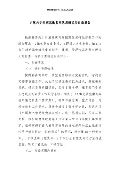 【七哥公文】2025年:【七哥公文】乡镇关于党旗党徽图案使用情况的自查报告+更多免费公文+VX:QiGeGongWen2024+更多免费公文+VX:QiGeGongWen2024