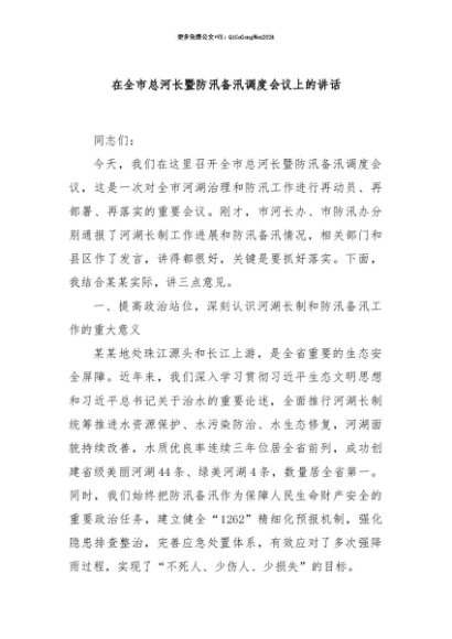 【七哥公文】2025年:【七哥公文】在全市总河长暨防汛备汛调度会议上的讲话+更多免费公文+VX:QiGeGongWen2024+更多免费公文+VX:QiGeGongWen2024