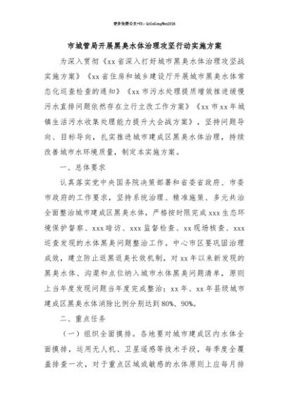 【七哥公文】2025年:【七哥公文】市城管局开展黑臭水体治理攻坚行动实施方案+更多免费公文+VX:QiGeGongWen2024+更多免费公文+VX:QiGeGongWen2024