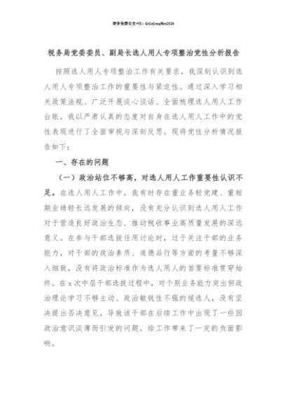 【七哥公文】2025年:【七哥公文】税务局党委委员、副局长选人用人专项整治党性分析报告+更多免费公文+VX:QiGeGongWen2024+更多免费公文+VX:QiGeGongWen2024