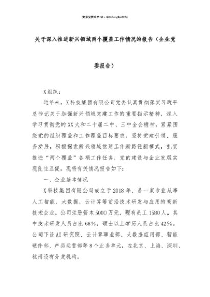 【七哥公文】2025年:【七哥公文】关于深入推进新兴领域两个覆盖工作情况的报告(企业党委报告)+更多免费公文+VX:QiGeGongWen2024+更多免费公文+VX:QiGeGongWen2024