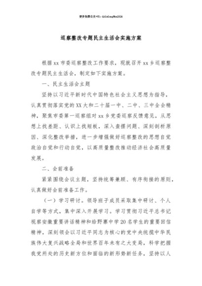 【七哥公文】2025年:【七哥公文】巡察整改专题民主生活会实施方案+更多免费公文+VX:QiGeGongWen2024+更多免费公文+VX:QiGeGongWen2024