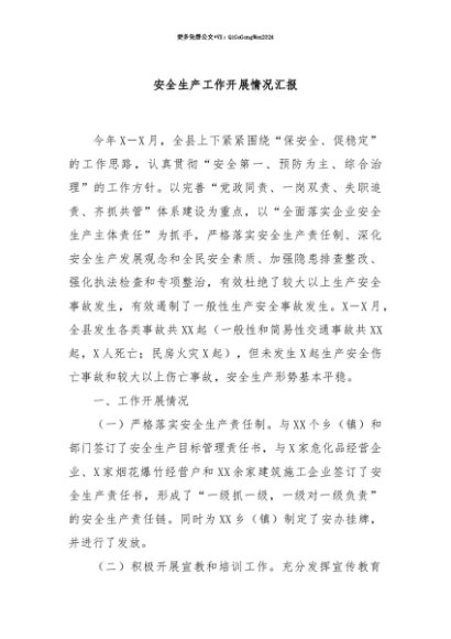 【七哥公文】2025年:【七哥公文】安全生产工作开展情况汇报+更多免费公文+VX:QiGeGongWen2024+更多免费公文+VX:QiGeGongWen2024