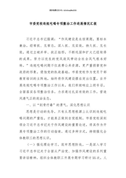【七哥公文】2025年:【七哥公文】市委党校违规吃喝专项整治工作进展情况汇报+更多免费公文+VX:QiGeGongWen2024+更多免费公文+VX:QiGeGongWen2024