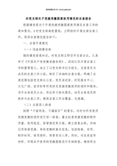 【七哥公文】2025年:【七哥公文】村党支部关于党旗党徽图案使用情况的自查报告+更多免费公文+VX:QiGeGongWen2024+更多免费公文+VX:QiGeGongWen2024