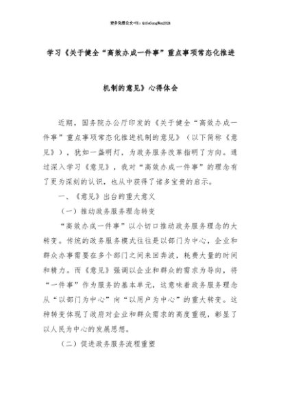 【七哥公文】2025年:【七哥公文】学习《关于健全“高效办成一件事”重点事项常态化推进机制的意见》心得体会+更多免费公文+VX:QiGeGongWen2024+更多免费公文+VX:QiGeGongWen2024