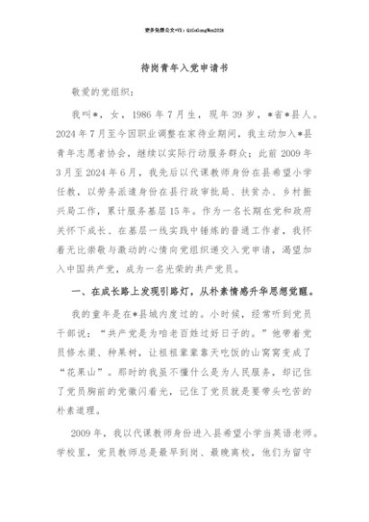 【七哥公文】2025年:【七哥公文】待岗青年入党申请书+更多免费公文+VX:QiGeGongWen2024+更多免费公文+VX:QiGeGongWen2024