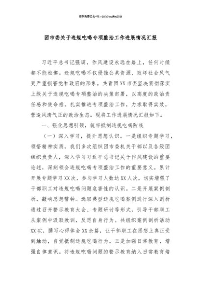 【七哥公文】2025年:【七哥公文】团市委关于违规吃喝专项整治工作进展情况汇报+更多免费公文+VX:QiGeGongWen2024+更多免费公文+VX:QiGeGongWen2024