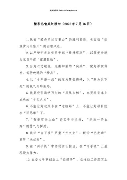【七哥公文】2025年:【七哥公文】精彩比喻类过渡句(2025年7月16日)+更多免费公文+VX:QiGeGongWen2024+更多免费公文+VX:QiGeGongWen2024