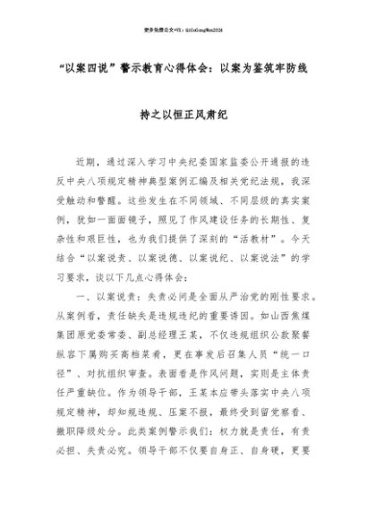 【七哥公文】2025年:【七哥公文】“以案四说”警示教育心得体会:以案为鉴筑牢防线持之以恒正风肃纪+更多免费公文+VX:QiGeGongWen2024+更多免费公文+VX:QiGeGongWen2024