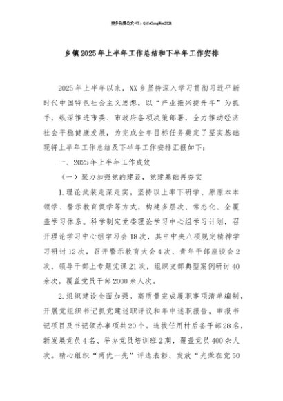 【七哥公文】2025年:【七哥公文】乡镇2025年上半年工作总结和下半年工作安排+更多免费公文+VX:QiGeGongWen2024+更多免费公文+VX:QiGeGongWen2024