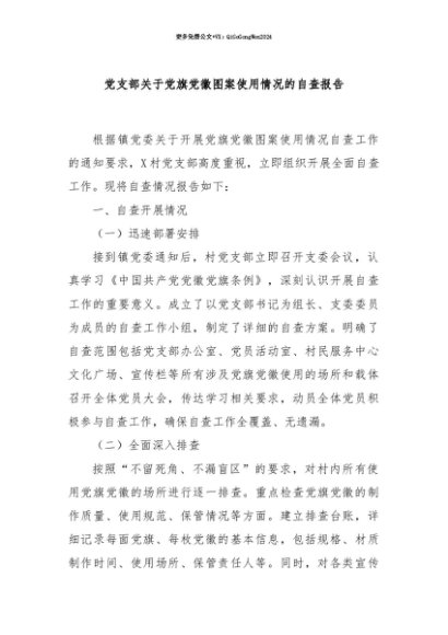 【七哥公文】2025年:【七哥公文】党支部关于党旗党徽图案使用情况的自查报告+更多免费公文+VX:QiGeGongWen2024+更多免费公文+VX:QiGeGongWen2024