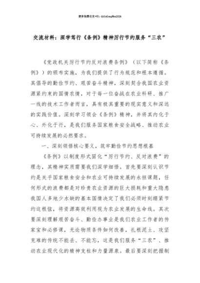 【七哥公文】2025年:【七哥公文】交流材料:深学笃行《条例》精神厉行节约服务“三农”+更多免费公文+VX:QiGeGongWen2024+更多免费公文+VX:QiGeGongWen2024
