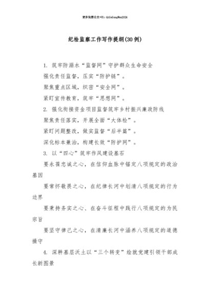 【七哥公文】2025年:【七哥公文】(30例)纪检监察工作写作提纲+更多免费公文+VX:QiGeGongWen2024+更多免费公文+VX:QiGeGongWen2024