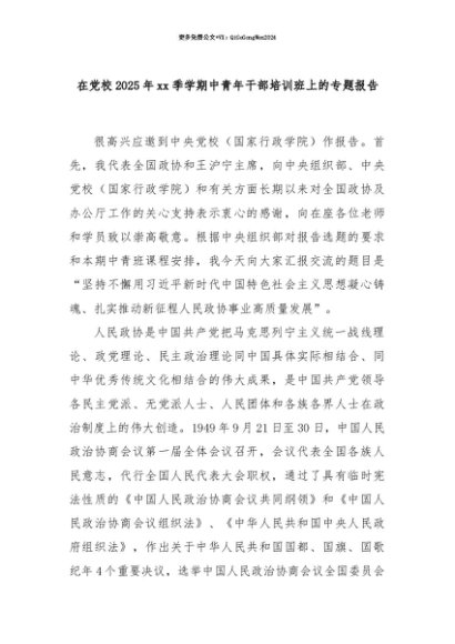【七哥公文】2025年:【七哥公文】在党校2025年xx季学期中青年干部培训班上的专题报告+更多免费公文+VX:QiGeGongWen2024+更多免费公文+VX:QiGeGongWen2024