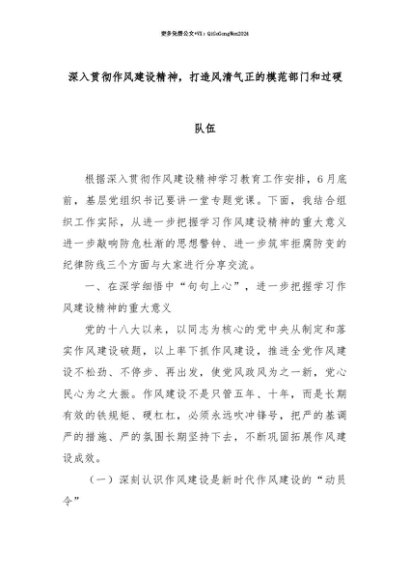 【七哥公文】2025年:【七哥公文】深入贯彻作风建设精神,打造风清气正的模范部门和过硬队伍+更多免费公文+VX:QiGeGongWen2024+更多免费公文+VX:QiGeGongWen2024