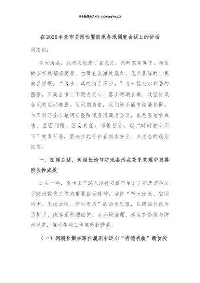 【七哥公文】2025年:【七哥公文】在2025年全市总河长暨防汛备汛调度会议上的讲话+更多免费公文+VX:QiGeGongWen2024+更多免费公文+VX:QiGeGongWen2024