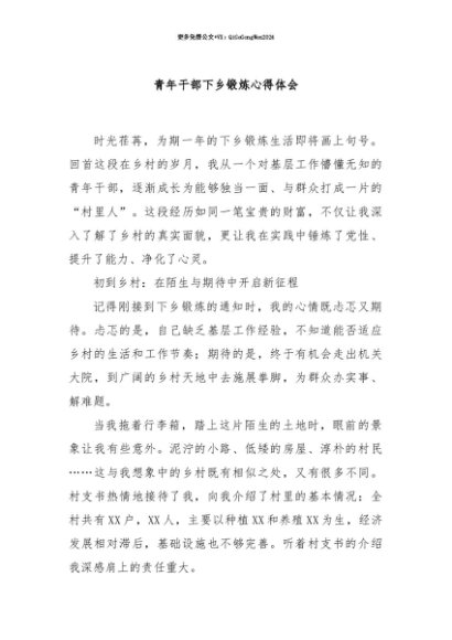 【七哥公文】2025年:【七哥公文】青年干部下乡锻炼心得体会+更多免费公文+VX:QiGeGongWen2024+更多免费公文+VX:QiGeGongWen2024