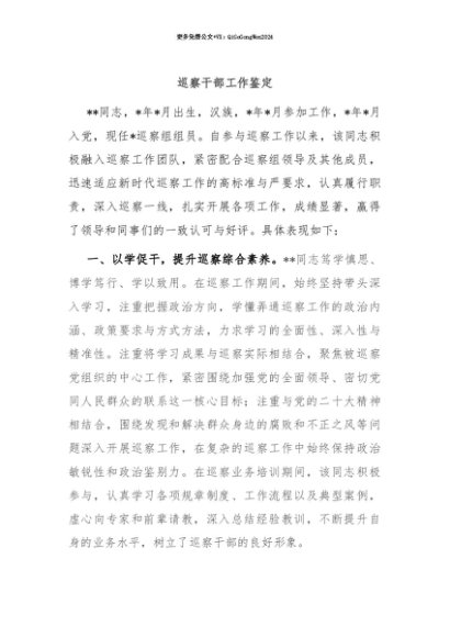 【七哥公文】2025年:【七哥公文】巡察干部工作鉴定+更多免费公文+VX:QiGeGongWen2024+更多免费公文+VX:QiGeGongWen2024
