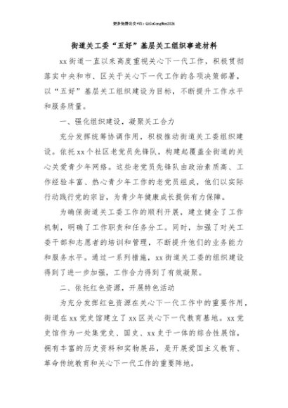 【七哥公文】2025年:【七哥公文】街道关工委“五好”基层关工组织事迹材料+更多免费公文+VX:QiGeGongWen2024+更多免费公文+VX:QiGeGongWen2024