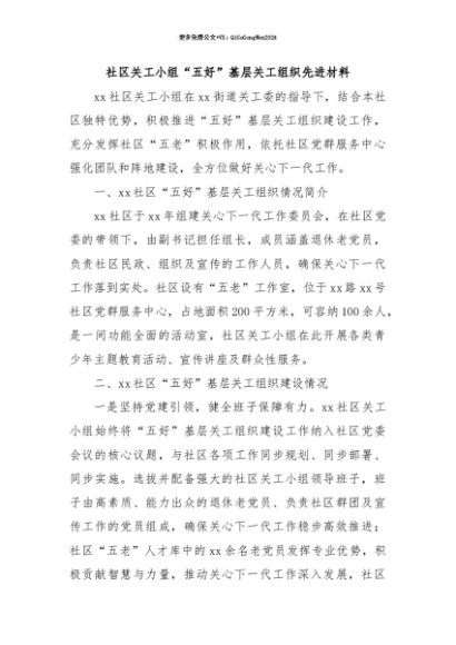 【七哥公文】2025年:【七哥公文】社区关工小组“五好”基层关工组织先进材料+更多免费公文+VX:QiGeGongWen2024+更多免费公文+VX:QiGeGongWen2024