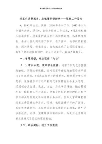 【七哥公文】2025年:【七哥公文】巡察尖兵勇担当,忠诚履职谱新章——巡察工作鉴定+更多免费公文+VX:QiGeGongWen2024+更多免费公文+VX:QiGeGongWen2024