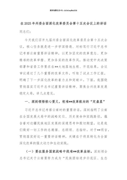 【七哥公文】2025年:【七哥公文】在2025年州委全面深化改革委员会第十五次会议上的讲话+更多免费公文+VX:QiGeGongWen2024+更多免费公文+VX:QiGeGongWen2024