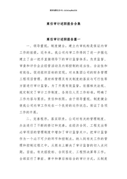 【七哥公文】2025年:【七哥公文】(5篇)离任审计述职报告合集+更多免费公文+VX:QiGeGongWen2024+更多免费公文+VX:QiGeGongWen2024