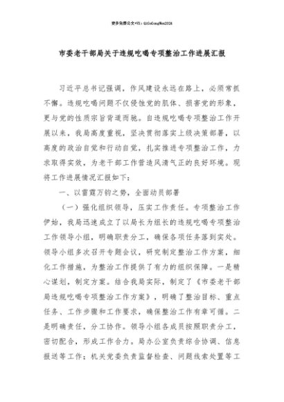 【七哥公文】2025年:【七哥公文】市委老干部局关于违规吃喝专项整治工作进展汇报+更多免费公文+VX:QiGeGongWen2024+更多免费公文+VX:QiGeGongWen2024