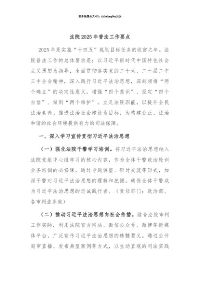 【七哥公文】2025年:【七哥公文】法院2025年普法工作要点+更多免费公文+VX:QiGeGongWen2024+更多免费公文+VX:QiGeGongWen2024