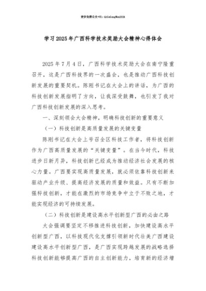 【七哥公文】2025年:【七哥公文】学习2025年广西科学技术奖励大会精神心得体会+更多免费公文+VX:QiGeGongWen2024+更多免费公文+VX:QiGeGongWen2024