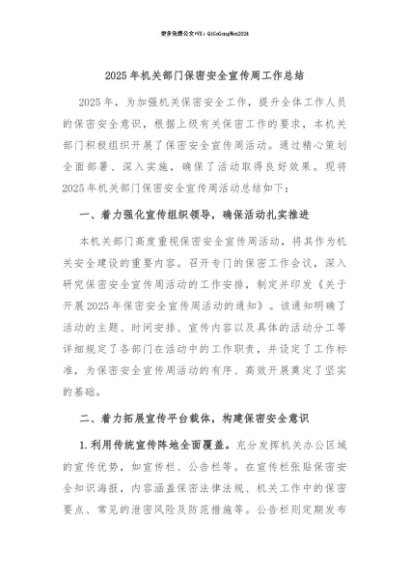 【七哥公文】2025年:【七哥公文】2025年机关部门保密安全宣传周工作总结+更多免费公文+VX:QiGeGongWen2024+更多免费公文+VX:QiGeGongWen2024