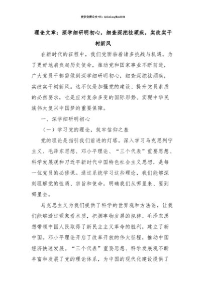 【七哥公文】2025年:【七哥公文】理论文章:深学细研明初心,细查深挖祛顽疾,实改实干树新风+更多免费公文+VX:QiGeGongWen2024+更多免费公文+VX:QiGeGongWen2024