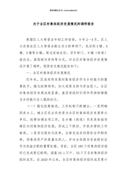 【七哥公文】2025年:【七哥公文】关于全区村集体经济发展情况的调研报告+更多免费公文+VX:QiGeGongWen2024+更多免费公文+VX:QiGeGongWen2024