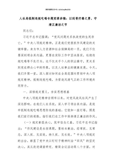 【七哥公文】2025年:【七哥公文】人社局抵制违规吃喝专题党课讲稿:以刮骨疗毒之勇,守清正廉洁之节+更多免费公文+VX:QiGeGongWen2024+更多免费公文+VX:QiGeGongWen2024