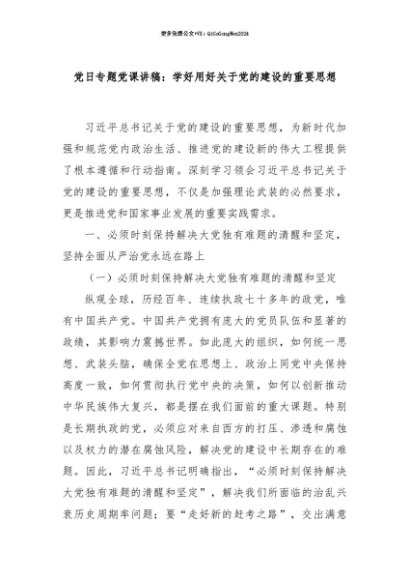 【七哥公文】2025年:【七哥公文】党日专题党课讲稿:学好用好关于党的建设的重要思想+更多免费公文+VX:QiGeGongWen2024+更多免费公文+VX:QiGeGongWen2024
