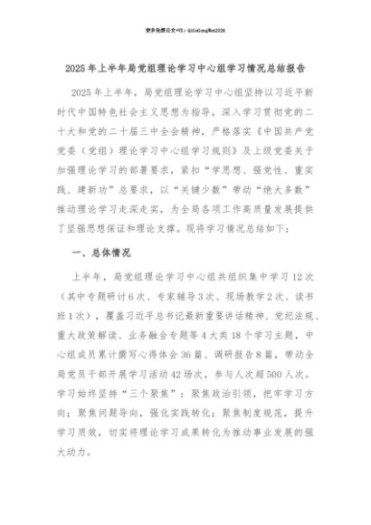 【七哥公文】2025年:【七哥公文】2025年上半年局党组理论学习中心组学习情况总结报告+更多免费公文+VX:QiGeGongWen2024+更多免费公文+VX:QiGeGongWen2024