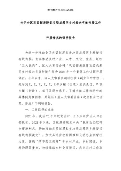 【七哥公文】2025年:【七哥公文】关于全区巩固拓展脱贫攻坚成果同乡村振兴有效衔接工作开展情况的调研报告+更多免费公文+VX:QiGeGongWen2024+更多免费公文+VX:QiGeGongWen2024